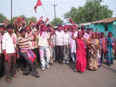 न्यूनतम मजदूरी मिलने पर विजय जुलूस